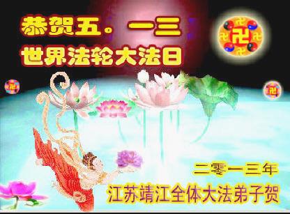 同庆世界大法日 贺师传法救大穹 二十一载创辉煌 法轮大法传万代 江苏省全体大法弟子敬贺 江苏省泰州市靖江市全体大法弟子恭贺5.13世界大法日!