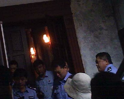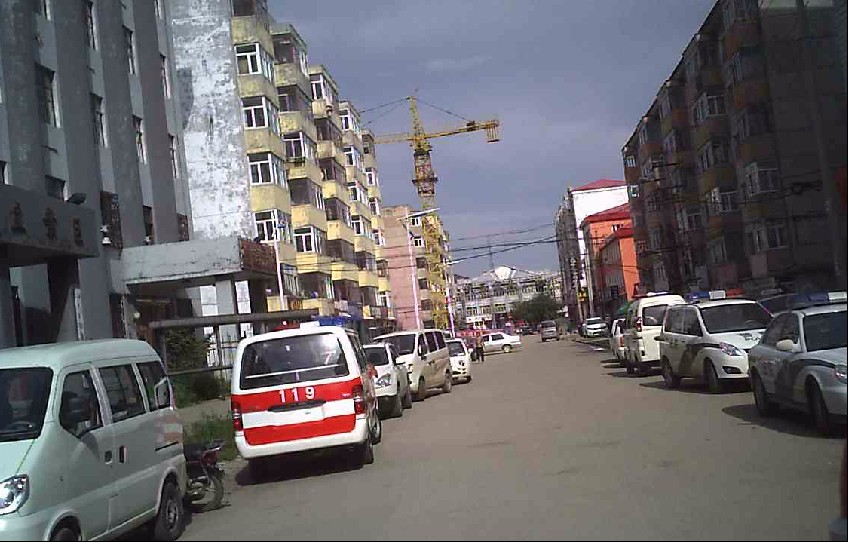 法庭外一男士被绑架 在法警和律师激烈的争论时,有一年轻人在现场照相,被一警察(警号F23906)发现,一把抓住年轻人的胳膊欲绑架他,被周围的世人阻止,才使这位年轻人走脱,之后该警察又多次窜出法院门外寻找照相的年轻人,并扬言要对现场的所有人录像。法院费了九牛二虎之力才由一名穿着黑色警装的警察贼头贼脑的关上“庭审区”的门,并将电动卷帘门放下来锁上。折腾一番之后,法庭到下午一点半才开庭。 大约一点五十左右,一名身穿浅蓝色半截袖的男士被依兰县公安局国保大队普通警察郑军和十来个便衣连拉带拽、其中一个便衣架着男士的两个腋窝,接着又上来四五个便衣,把男士仰面朝天的抬起来向停在道北没有挂车牌子的轿车去走,这时男士一边抗争一边大喊:警察抓人了!警察抓人了!一个便衣上来怕人听到掐他的脖子不让他喊,国保大队的郑军指挥便衣,把男士往轿车里塞,这时一个五大三粗、剃着平头的便衣一边攥着两个拳头狠命的往车里塞,一边嘴里还说打他!这时国保大队的郑军走到车门前说:关上车门子,把车门子、锁上、送走,就这样在众目睽睽之下这位男士无缘无故的就被国保大队被抓走了。 国保大队还把一辆停在法院门前一辆面包车偷到依兰县公安局。司机到公安局去要车,司机没有追究警察的偷盗行为,警察竟倒打一耙,强迫司机把车开到依兰县运管站,并让运管站以没有营运证拉客为由,企图达到高额罚款的目地。警察还扬言说:面包车是法轮功的,要立案调查。 对四位法轮功学员连轴非法庭审至傍晚 四位被非法庭审法的法轮功学员,多是六、七十岁的老年妇女,从哈尔滨市第二看守所(鸭子圈)非法关押处,经过四个小时左右五百多华里的一路颠簸,到法院下车后已是步履蹒跚,特别是费淑芹,在哈市被非法关押期间被迫害出肝炎传染病、心脏病、子宫肌瘤、高血压等症状,身体十分虚弱,非法庭审到两点半左右,费淑芹在法庭上当场就休克了,被开庭前就准备好的停在法院后院的“120”车送去医院抢救,非法庭审被迫休庭。  费淑芹的女儿坐在120急救车里抱着母亲去医院抢救 |