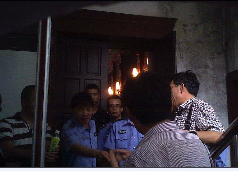 恶警发飙刁难律师 一度要退庭 为费淑芹等人辩护的三位律师在法庭安检门遭到把门的五、六个法警阻拦,有依兰县法院法警队长高振伦、检察院法警封建清等,他们要非法搜查律师的包,企图达到刁难、威胁、羞辱律师的目地,因为《律师法》中明确规定:律师和法官享有同等待遇,不允许警察随意搜查律师的包。 五十多岁的依兰县检察院警察封建清粗暴、蛮横不讲理叉着腰、手指着律师们说:你必须得接受检查,不接受检查你出去! 法警队队长高振伦诬蔑的对律师说:谁知道你背的是啥?你要背的是炸药呢?你背炸药怎么整?就你这样我见的多了,我脱下这服装我打你这个样的…… 在恶警叫嚷不休时,法院副院长孙柏庆和庭长张安克从法庭里推门而出,张安克听了一会之后叫律师拿出手机、照相机、录音器材。这时封建清咬着牙大喊:必须接受检查! 这时,其中一位律师做出让步说:张安克庭长说只把手机、照相机、录音器材拿出来就行了,你们不许翻我的包,拿我的东西。 法院法警队长高振伦还坚持要求非法搜查律师的背包。律师说:这还有个辩?你们违法这样搞,口口声声说按法律办事,实际上是按你们内部文件办事。把你们内部文件拿出来。 高振伦拿不出内部文件,恼羞成怒,对律师大吼大叫说:审判长张安克也管不着我!我要不穿这套衣服我就……还用手恶狠狠的点着律师咬牙切齿的威胁说:就这么规定的,爱哪告哪告去!你爱进不进,不进就出去!同时高振伦冲出安检门奔向律师,要对律师大打出手,被周围的人拦住未能得逞。 律师说:没有我们辩护,你们就别想开庭!然后就拂袖而去。 开庭时,审判长张安克无奈,只好硬着头皮出来找到律师,请律师出庭。在此过程中,依兰县法院副院长孙柏庆始终在现场,一直漠视手下法警违法行径、恶言恶语。  高振伦粗暴的用手指点着律师 |