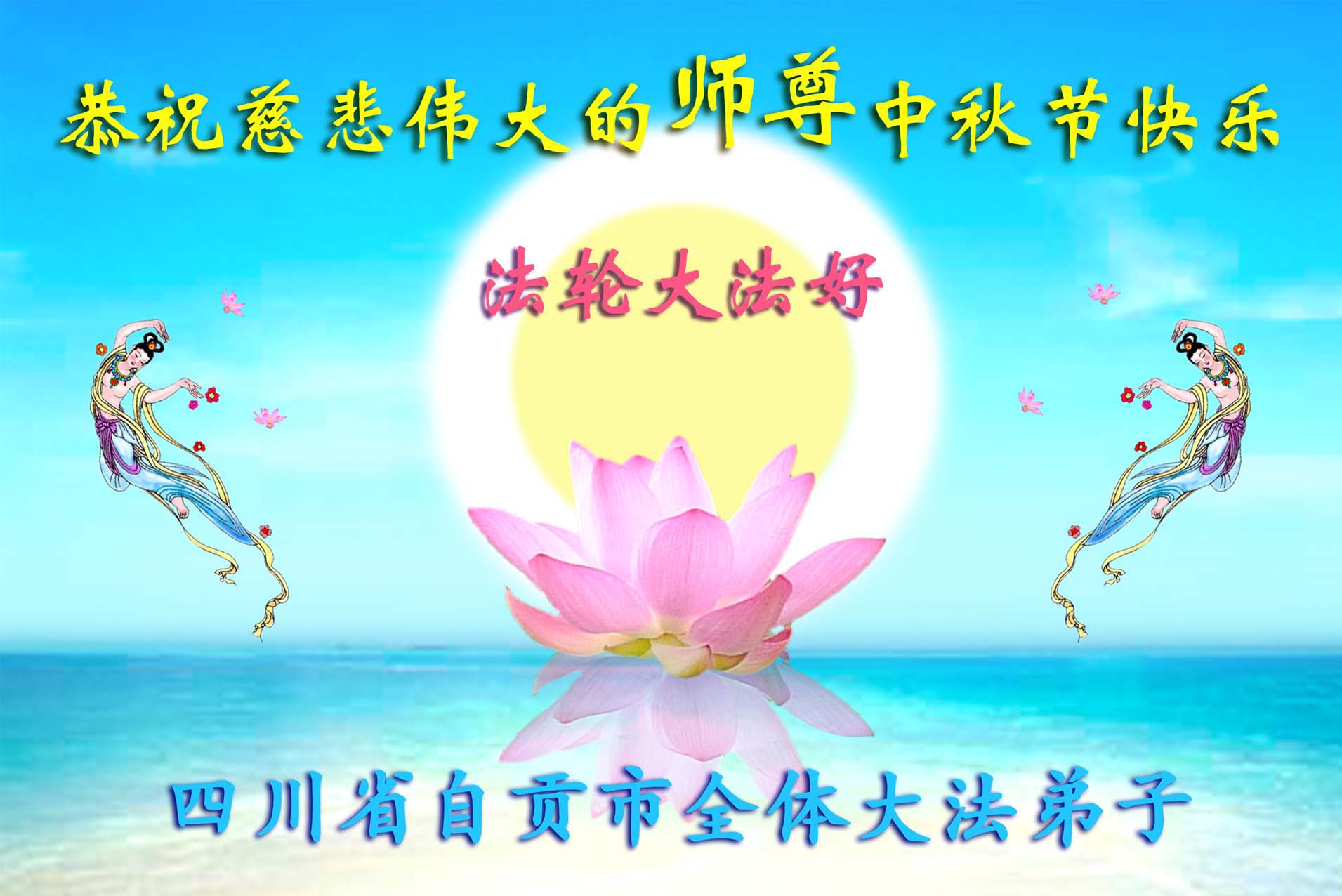 四川省自贡市全体大法弟子恭祝慈悲伟大的师尊中秋节快乐!