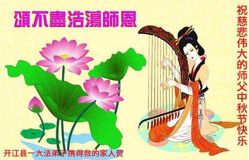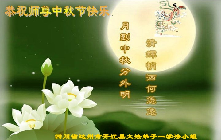 四川省达州市开江县一学法小组全体大法弟子恭祝慈悲伟大的师尊中秋节快乐!师尊:弟子们想念您!弟子们叩拜恩师慈悲苦度!唯有精進报师恩! 四川省达州市开江县从新走回大法修炼的大法弟子敬祝慈悲伟大的恩师中秋节快乐!