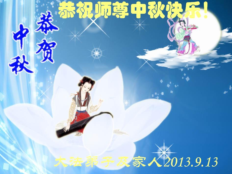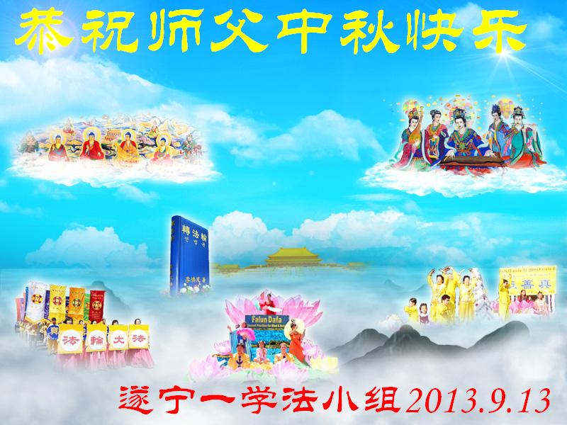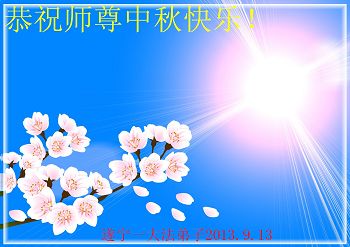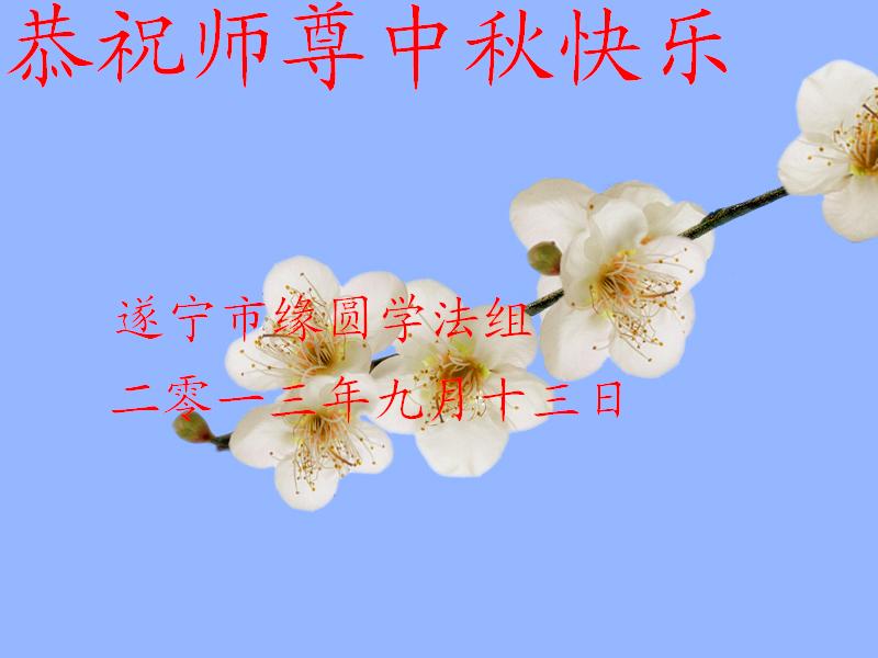 【明慧网二零一三年九月十八日】 四川省遂宁一学法小组大法弟子恭祝师尊中秋节快乐!