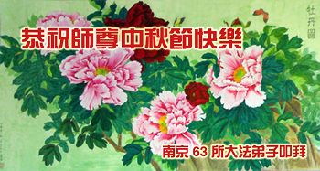 江苏省南京63所大法弟子恭祝师尊中秋节快乐!