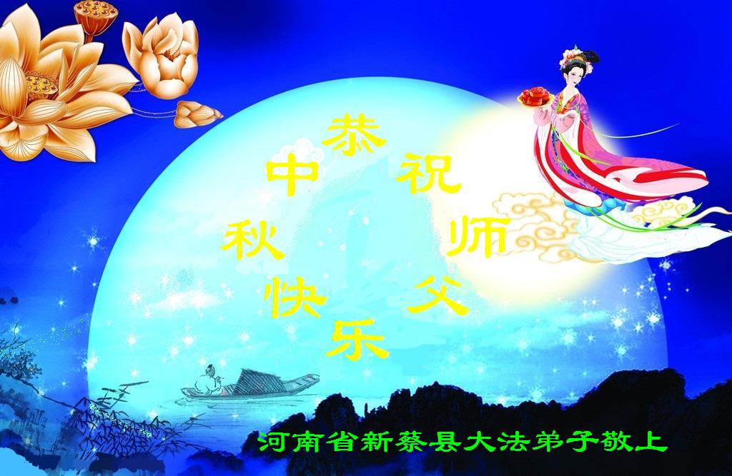 遥望天边升起的一轮圆月,让我们想起远在海外的伟大师尊。师父啊:您辛苦了!我们盼您回来的那一刻。我们会用喜庆的锣鼓,缤纷的彩带,让您走在铺满鲜花的大道上。让后人永远敬仰我们师尊和铭记大法洪传的伟大历史!我们也会更加努力的做好三件事,不辜负您的慈悲苦度和众生的期盼。 河南省驻马店市新蔡县大法弟子恭祝师父中秋快乐!
