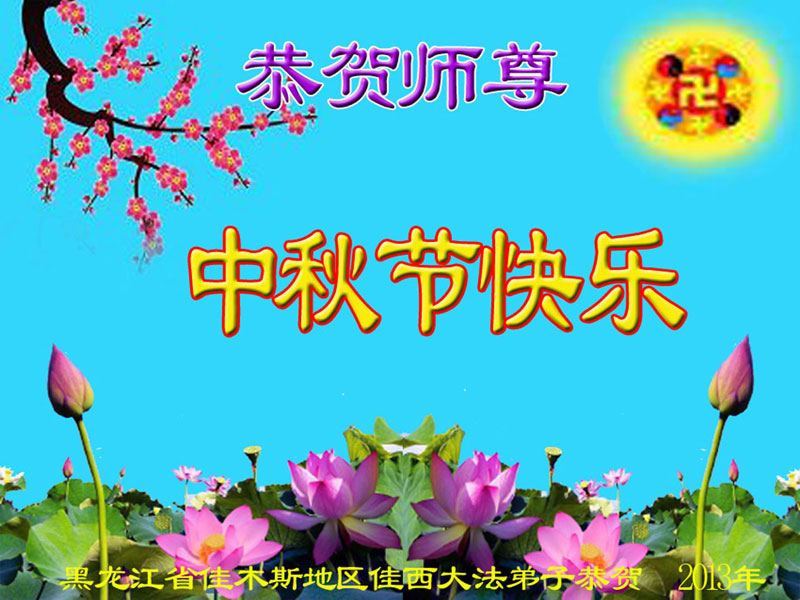 全体大法弟子想念师父!敬请师父放心,我们会在助师正法的最后时刻走好每一步多救人。 黑龙江省佳木斯大法弟子恭祝伟大师尊中秋快乐!