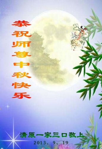 【明慧网二零一三年九月十八日】 国家金融系统人民银行大法弟子恭祝师尊中秋快乐!