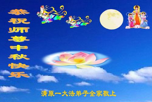 师父恩泽苍宇,弟子感恩师尊!弟子在师尊的佛恩浩荡下走过了风风雨雨十几年,师尊为弟子所承受的和付出的是弟子永远也无法知道的!弟子感恩无尽言!弟子一定珍惜这万古不遇的神圣机缘,精進实修,做好三件事,兑现神圣的誓约,完成救度众生的神圣使命,不让师父失望,不让众生失望!跪拜师尊!合十! 黑龙江省哈尔滨市巴彦县大法弟子恭贺师尊中秋佳节快乐!