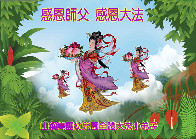 师父您好!我们在师尊的慈悲呵护下走过了十几个年头,师尊给予弟子的是弟子永远也无法报答的!在最后有限的时间里,弟子一定谨记师尊教诲,多学法,互相配合,互相补充,共同完成救度众生的神圣使命,不让师父失望,不让众生失望,早日跟师父回到自己美丽的家园。跪拜师尊!合十! 山东钢铁集团幼儿园全体大法小弟子恭祝师尊中秋快乐!