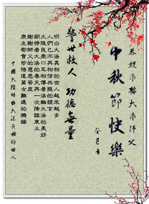 中国大陆明白大法真相的世人恭祝法轮大法师父中秋节快乐