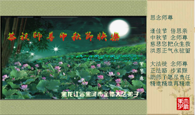 黑龙江省黑河市爱辉区大法弟子恭祝师父中秋节快乐
