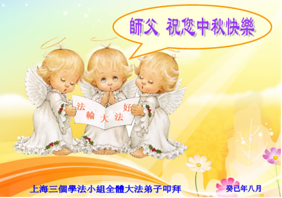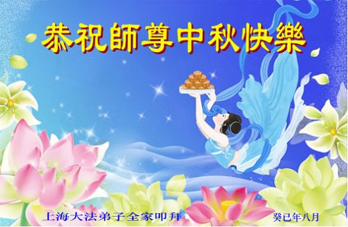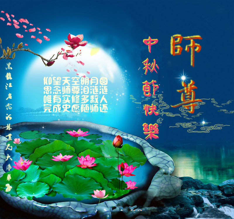 中秋节日想师尊, 学好大法救众生, 精進实修向前走, 跟随师尊回家园。 叩拜师尊 抚顺大法弟子 上海三个学法小组全体大法弟子恭祝师尊中秋快乐!