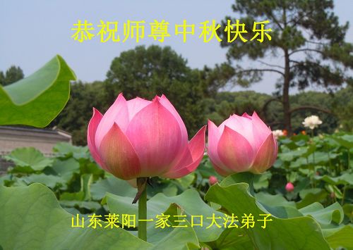 山东省烟台市莱阳市一家三口大法弟子恭祝师父中秋快乐!