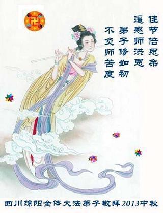 佳节倍思亲 遥感师洪恩 弟子修如初 不负师苦度 四川绵阳全体大法弟子敬拜 2013中秋 四川绵阳全体大法弟子恭祝师尊中秋快乐!