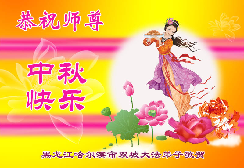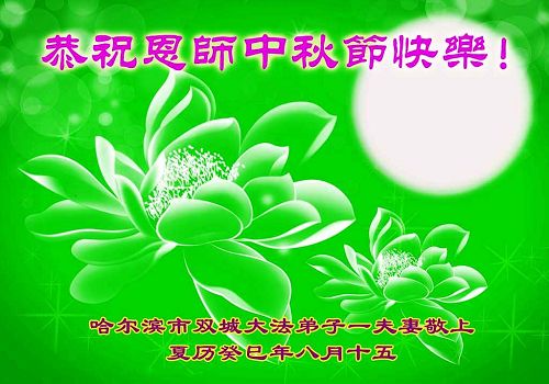 黑龙江省哈尔滨市双城市大法弟子家属恭祝李大师中秋节快乐