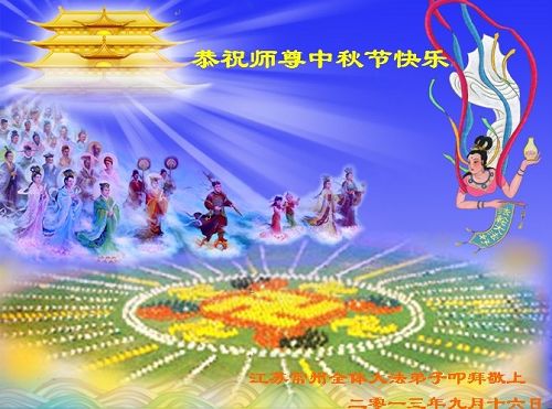 中秋明月光, 同化法更亮。 月亮照我行, 救人做真相。 都是为法来, 真修返故乡。 恭祝师尊好, 叩首谢圣王。 大连大法弟子 2013.8.23。 江苏常州全体大法弟子恭祝慈悲伟大的师尊中秋节快乐!