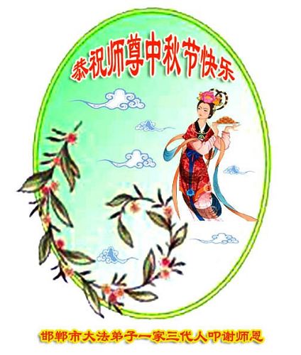 河北邯郸市大法弟子一家三代人恭祝师尊中秋节快乐!