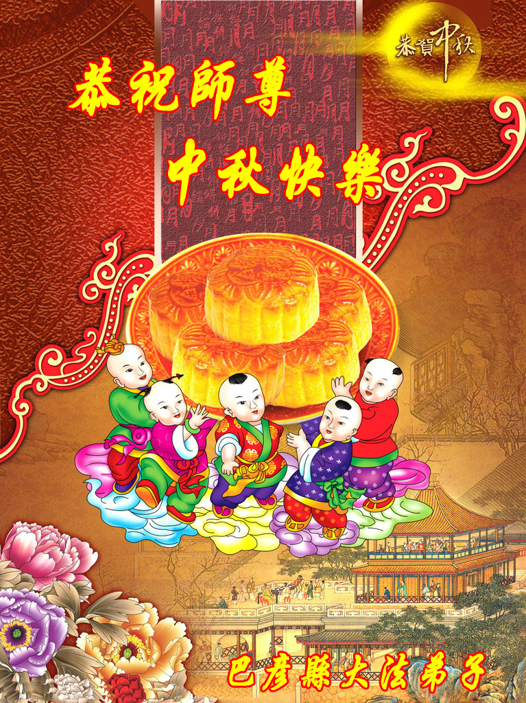 中秋佳节到 祝贺师父好 谨记师尊话 整体要提高 做好三件事 除恶又除妖 紧跟正法路 愿师添微笑