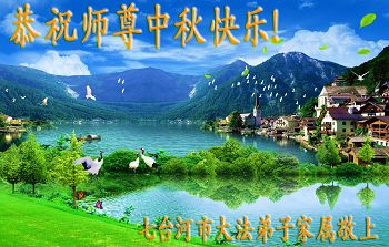 黑龙江七台河六人学法小组大法弟子:祝师尊中秋节快乐!弟子一定做好三件事,走好师尊安排的路,请师尊放心,谢谢师尊! 二零一三年九月十日 黑龙江七台河新兴区一家四口大法弟子祝师尊中秋快乐!