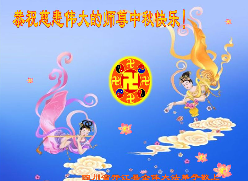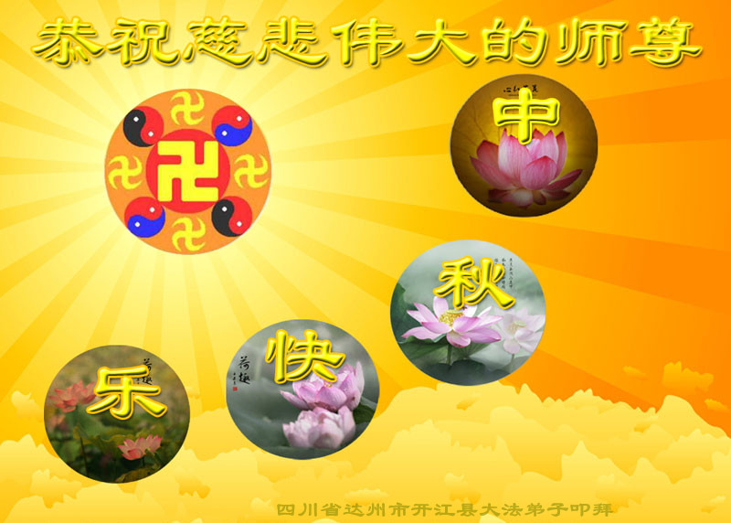 无法用语言感恩师尊的慈悲苦度,只有精進实修,做好三件事,才能唯愿师尊笑。 七台河一大法弟子叩拜敬上 二零一三年九月十一日 四川省达州市开江县一学法小组恭祝师尊中秋节快乐!