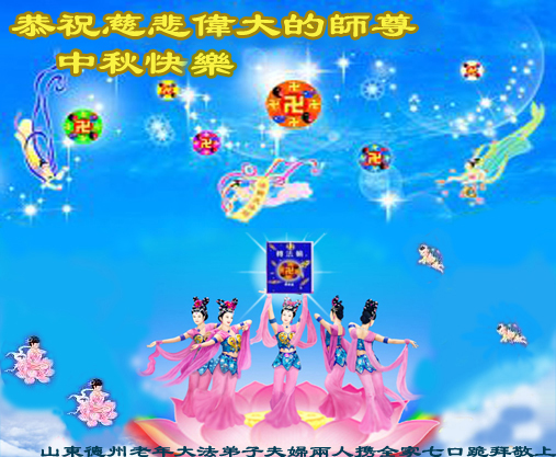 弟子们无以报答师父的救度之恩,只有学好法,整体升华,正念正行,做好三件事,兑现誓约完成使命,跟师父回家,叩拜师父! 山东省德州市平原县一名大法弟子代表全家人恭祝师父中秋快乐!