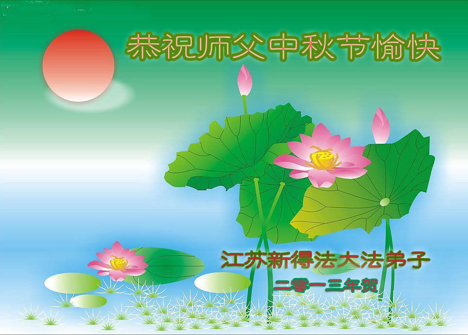 我是新学员,感谢伟大慈悲的师父救度之恩!弟子无法用语言表达对师父的感恩!唯有精進实修,做好三件事,跟师父回家。 连云港大法弟子 心莲敬上 二零一三年九月十六日 上海静安大法弟子恭祝师尊中秋节快乐