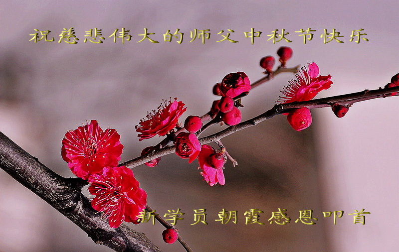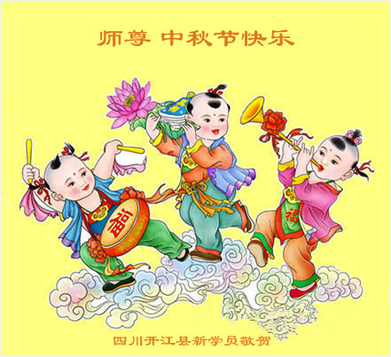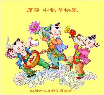 我们是09年的新学员。虽然现在我们一个人在家一个人在监狱,请师父放心,不管在什么情况下我们忘不了自己是大法弟子,做大法弟子应该做的三件事,跟师父回家。我们二人跪拜师尊中秋快乐! 四川省达州市一新学员感恩伟大的师尊!恭祝师尊中秋节愉快!