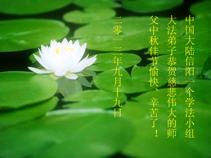弟子们想念您!我们学法小组的所有同修叩拜师父!请师父放心,我们会学好法,修好自己,多救众生,做好三件事。 河南新乡大法弟子恭祝师尊中秋节快乐!