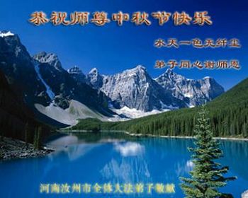 祝师尊中秋乐 千年万年盼相逢 法中觉醒灭妖风 山水复清日月明 再见恩师团圆日 河南信阳大法弟子敬上! 河南许昌全体大法弟子恭祝慈悲伟大的师尊中秋快乐!