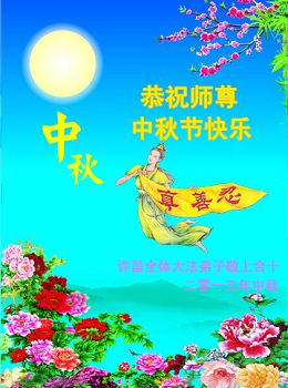 师尊辛苦了!许昌大法弟子想念师尊,恭祝恩师中秋快乐! 水调歌头 普天同庆 随师离天庭,践约世间行。吾师力挽狂澜,更新坏灭空。 师推法轮转动,穹体起死回生,宙宇呈光明。 世间有邪灵,红貙起妖风。谤佛法,害苍生,天不容。 天灭中共, 法徒速速救众生! 众业恩师担承,慈悲一等再等,大戏已尾声。 待普天同庆,叩谢师恩重。 河南许昌全体大法弟子叩首敬上 河南汉城大法弟子祝师尊中秋快乐!
