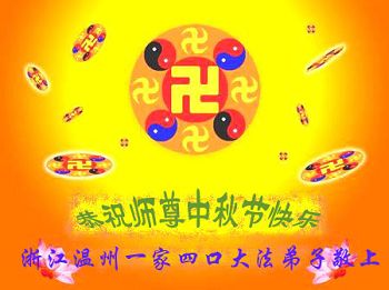 浙江省温州市一家四口大法弟子恭祝师尊中秋节快乐!