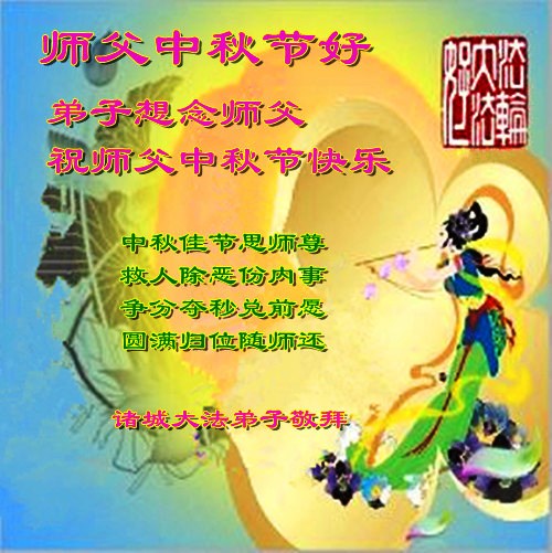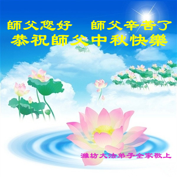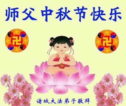 慈悲伟大的师父:感谢您让我绝处逢生,感谢您让我知道了生命存在的意义,感谢您赐予我的一切一切。在中秋节即将来临之际,弟子及全家祝您中秋节快乐,盼与师尊团聚!弟子一定克服困难,勇猛精進,最大限度的减少给师尊添麻烦。 山东省潍坊市诸城市大法弟子问候师父好,祝师父中秋节快乐!