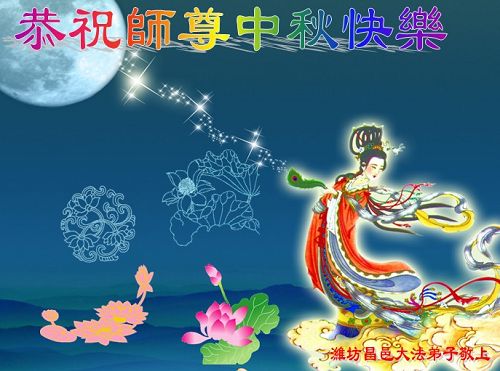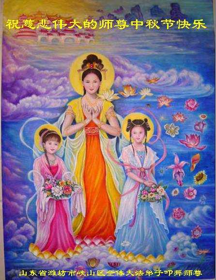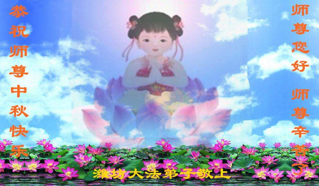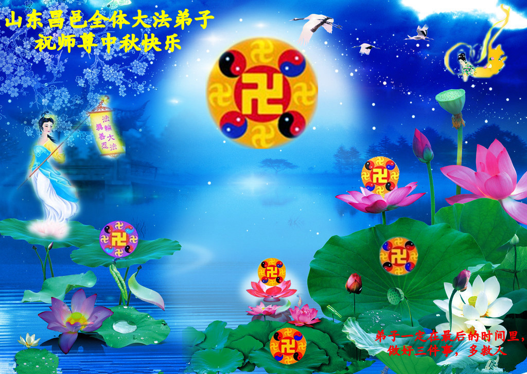 山东省潍坊一学法小组大法弟子祝慈悲伟大的师尊中秋节快乐!