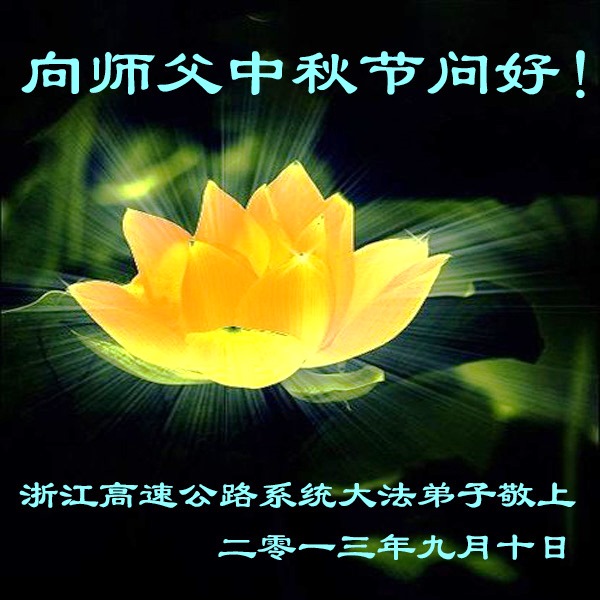 弟子们一定谨记师尊教诲,学好法,向内找,修好自己,整体配合好,做好三件事,多救众生,完成好自己的史前誓愿,跟师父回家! 浙江高速公路系统大法弟子中秋节向师父问好!