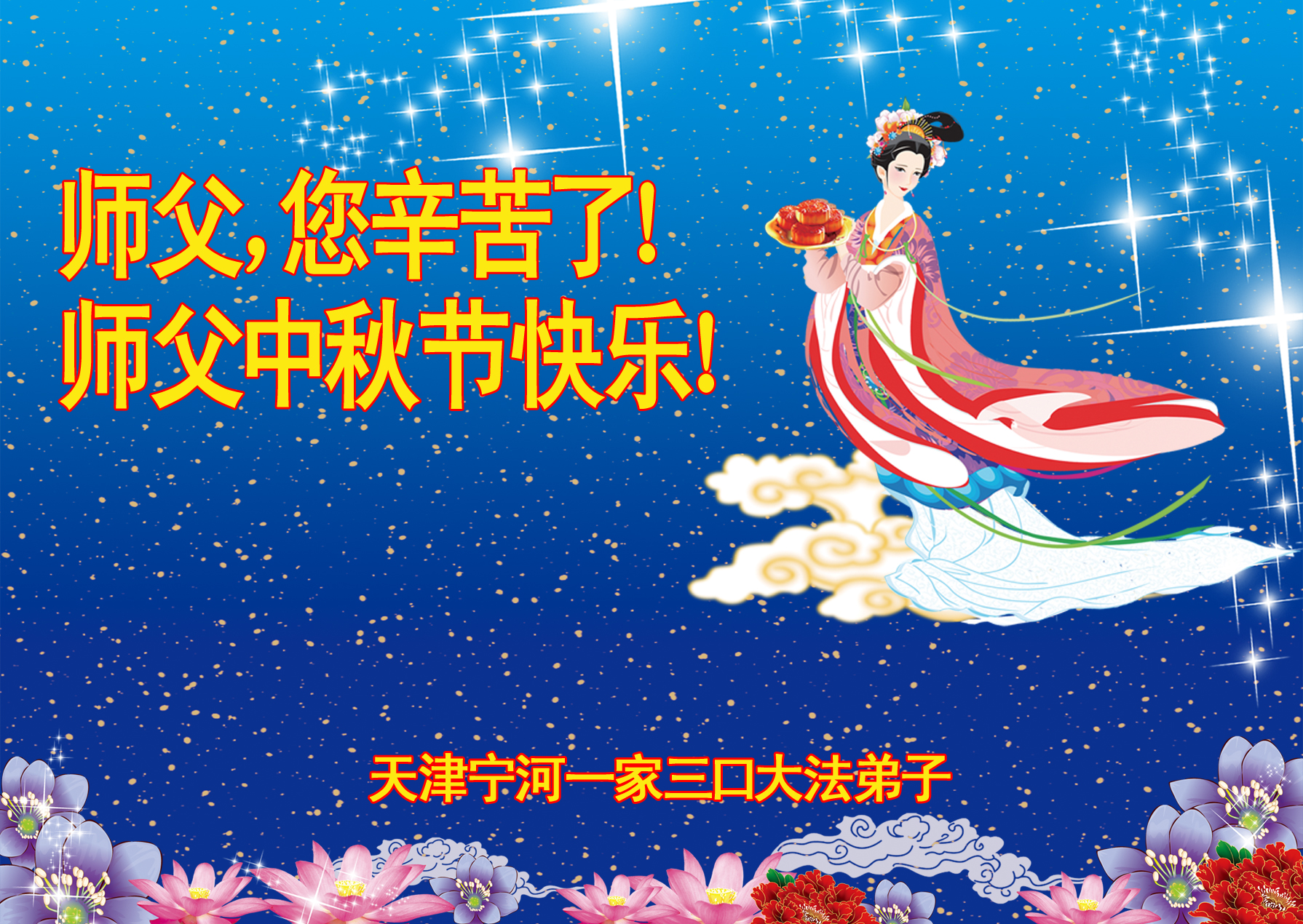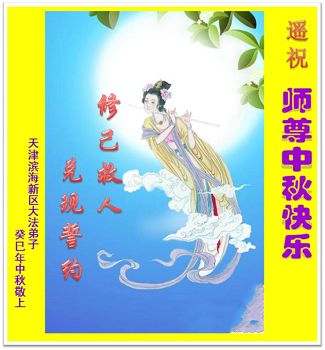 感谢师尊慈悲救度!师尊您辛苦了!弟子们要多学法、在实修中做好三件事,珍惜这万古机缘,不辜负师尊的慈悲苦度! 天津市大法弟子向慈悲伟大的师尊问好!恭祝慈悲伟大的师尊中秋节快乐!