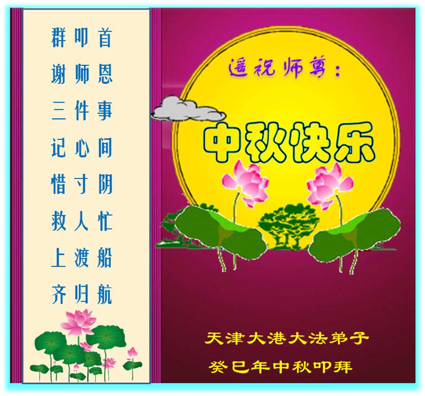 群叩首 谢师恩 三件事 记心间 惜寸阴 救人忙 上渡船 齐归航 天津大港大法弟子恭祝师尊中秋快乐! 天津滨海新区大法弟子恭祝师尊中秋快乐!
