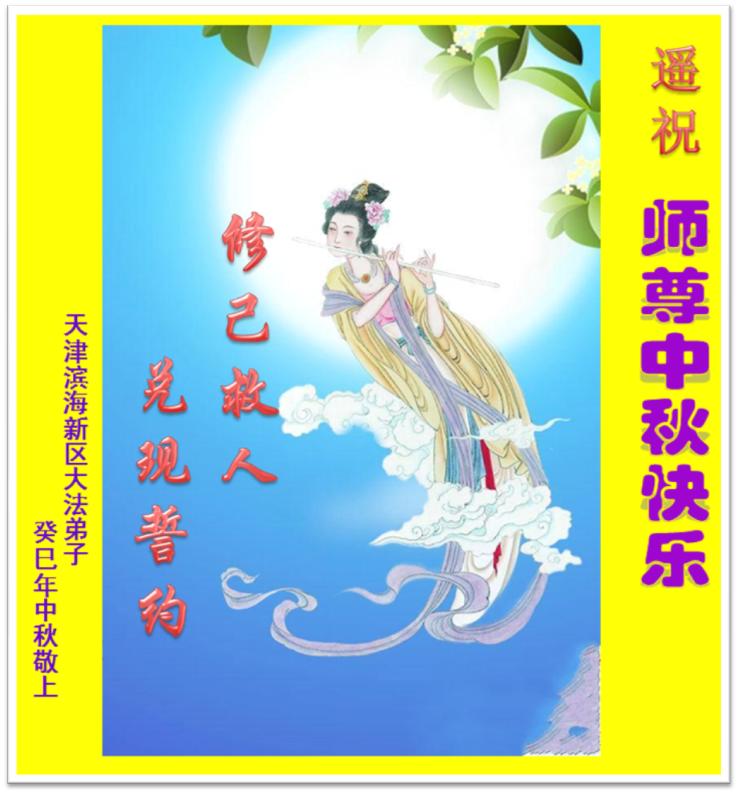 修己救人,兑现誓约。请师尊放心,弟子们会不枉师尊普度,做好三件事,完成史前大愿。 天津滨海新区大法弟子恭祝师尊中秋快乐! 天津大法弟子恭祝师父中秋快乐