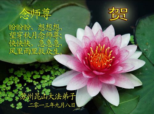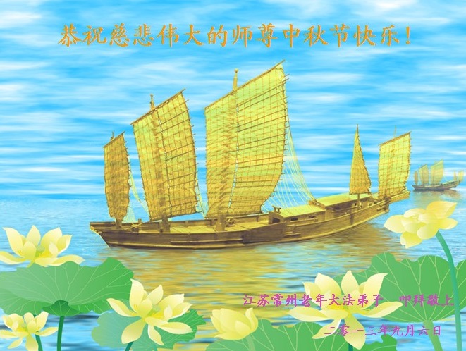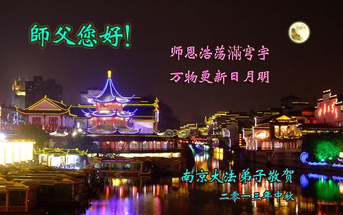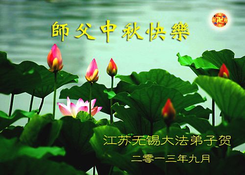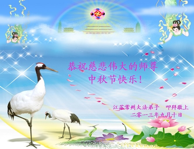 【明慧网二零一三年九月十九日】 江苏省南京大法弟子敬贺师父中秋好! 师恩浩荡满穹宇 万物更新日月明 江苏无锡大法弟子恭祝师父中秋快乐!