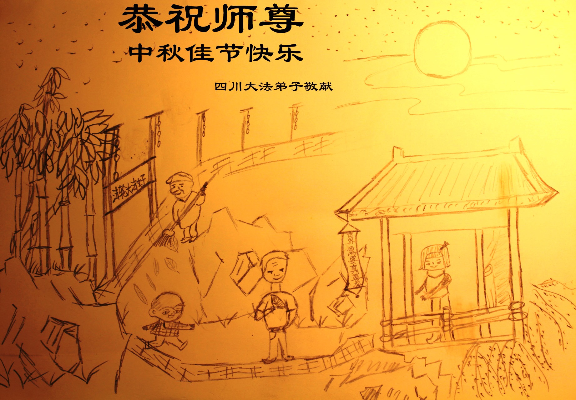 四川大法弟子敬献 (不太会画画,不过还是希望可以自己动手做一下。) 大陆一大法弟子恭祝师尊中秋快乐!