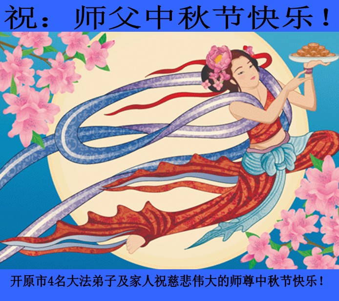 祝师父中秋快乐!茂名全体大法弟子向慈悲伟大的师尊问好! 全体大法弟子一定坚定正念整体配合,助师救度更多芸芸众生! 四川中江大法弟子恭祝师尊中秋节快乐!