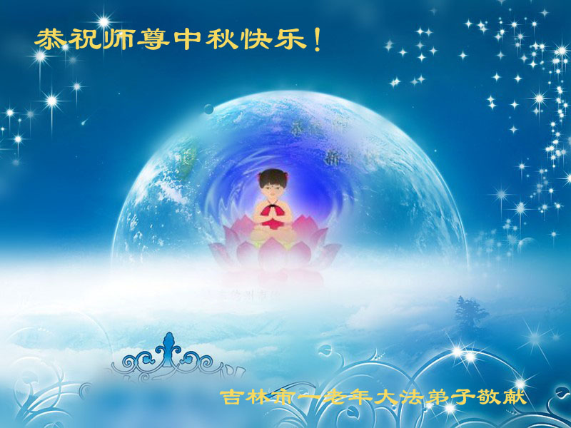 吉林市一老年大法弟子恭祝师尊中秋快乐!我们盼您回来!
