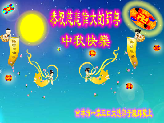 吉林市一家三口大法弟子祝愿师尊中秋快乐!