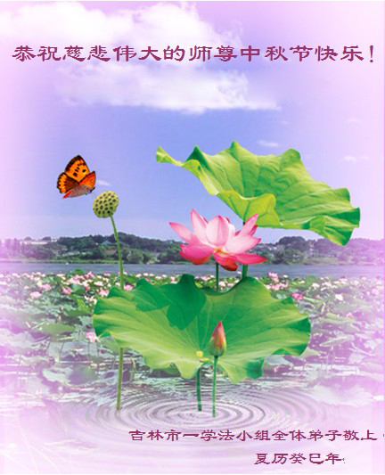 伟大慈悲的师尊您好: 在中秋佳节来临之际,我们家庭学法小组全体学员在此向伟大慈悲的师尊问好:祝愿伟大慈悲的师尊身体健康、万事如意、正法必成。 感谢伟大慈悲的师尊对我们全家所有人的慈悲救度与呵护。在今后的正法中我们一定认真做好三件事,不辜负师尊的期望,不辜负众生的期盼。 荷花笑及家庭学法小组 2013年9月16日 吉林市一学法小组大法弟子恭祝师尊中秋节快乐!