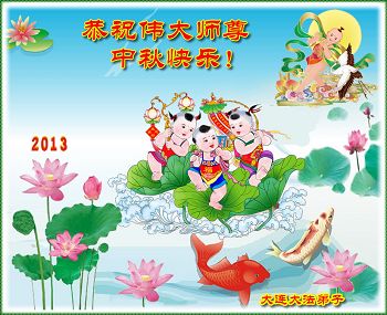 祝师父及全家人中秋快乐团圆,祝愿正法早日成功,祝愿同修大法弟子们早日圆满,祝愿好众生早日了解真相拥有未来! 山东莘县全体大法弟子 2013年9月16日 河北省衡水弟子祝师父中秋节快乐!
