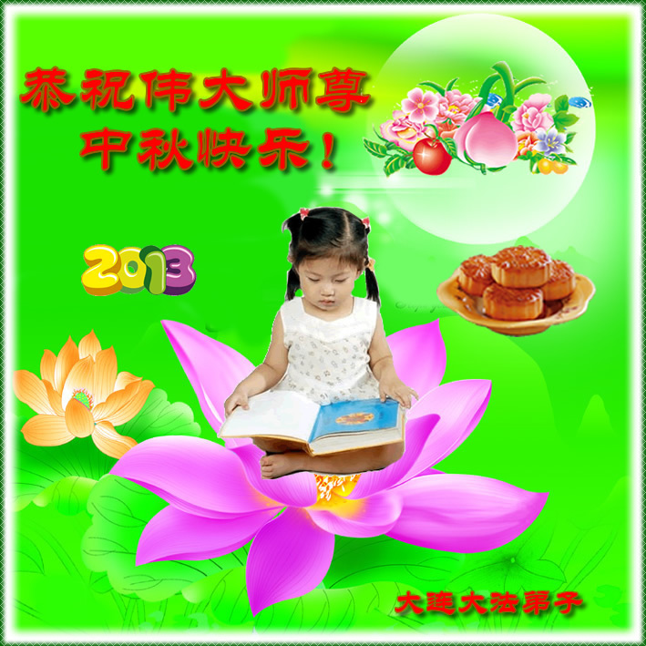 山东省威海荣成市一大法弟子及家人 二零一三年九月十六 辽宁省大连大法弟子恭祝伟大师尊中秋快乐!