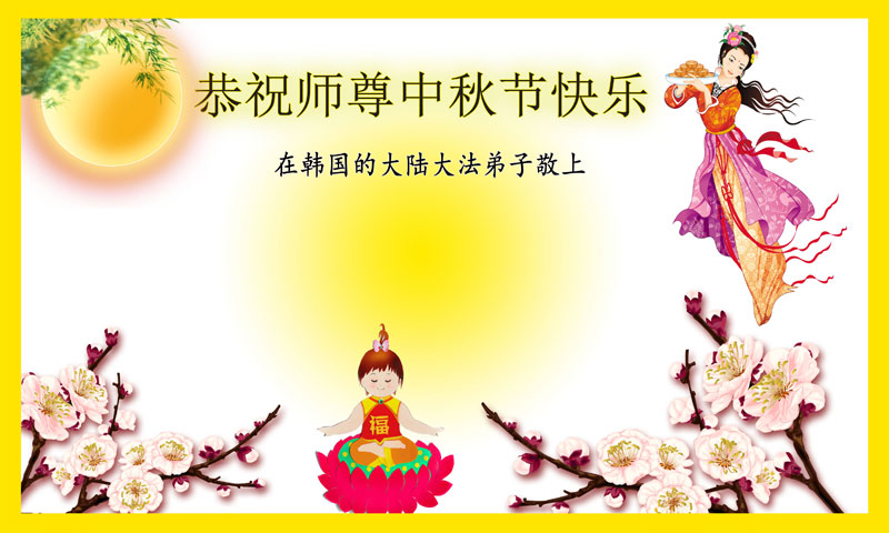 在韩国的大陆大法弟子恭祝慈悲伟大的师尊中秋节快乐!