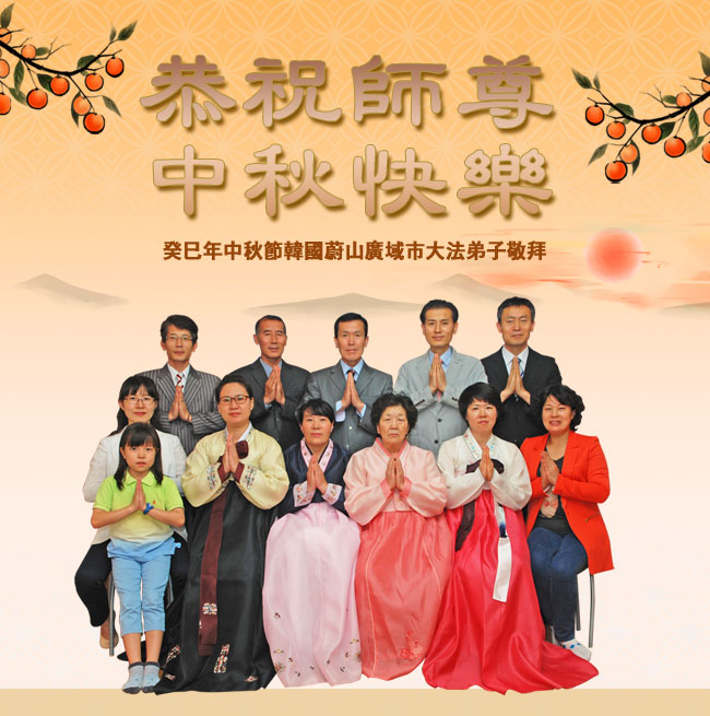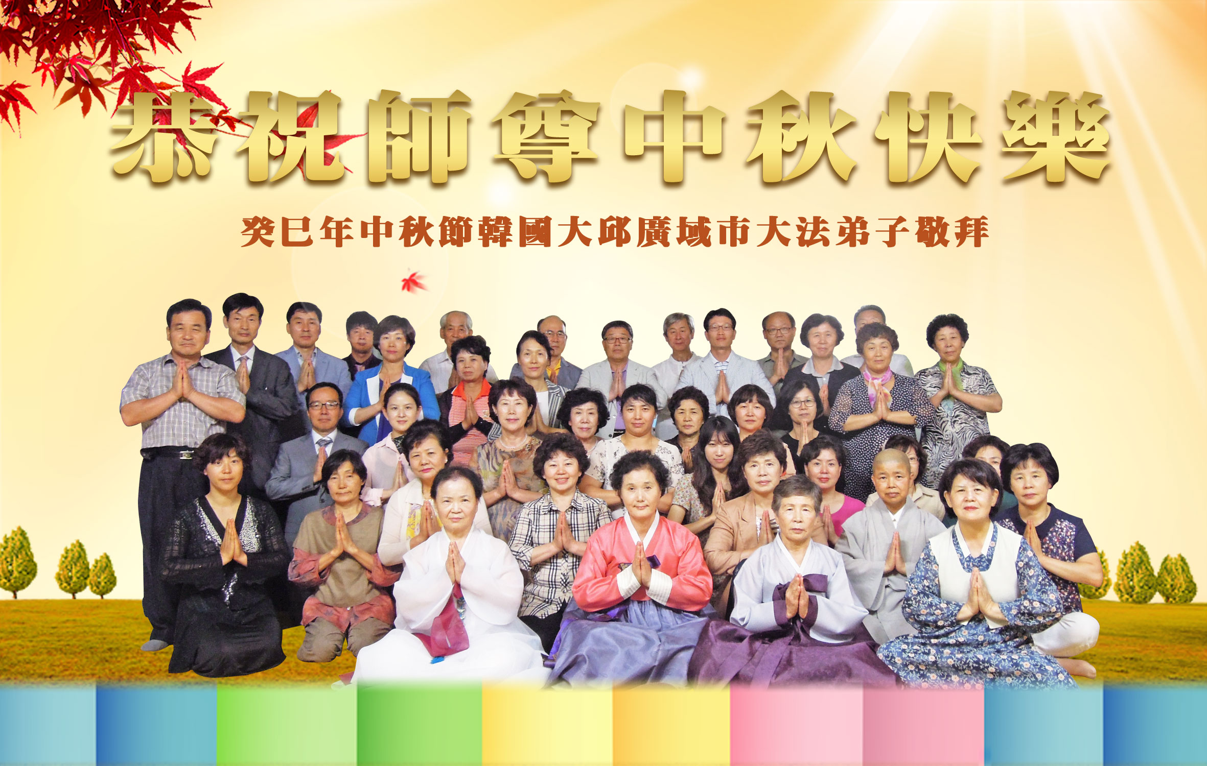 【明慧网二零一三年九月十九日】 韩国大邱市大法弟子恭祝慈悲伟大的师尊中秋快乐!
