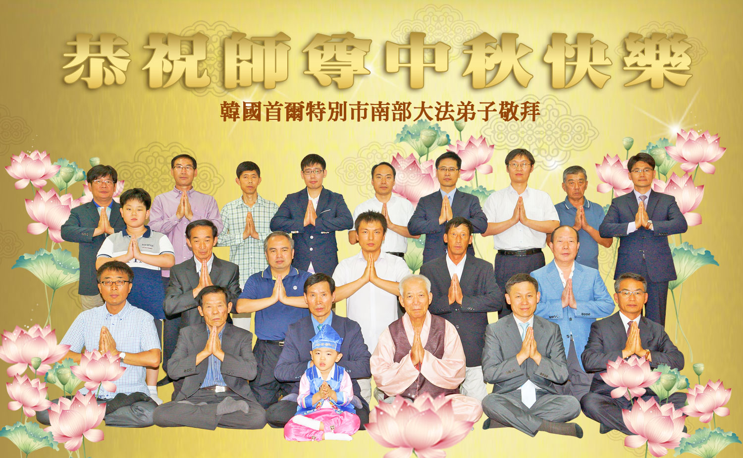 韩国首尔市南部男大法弟子恭祝慈悲伟大的师尊中秋快乐!