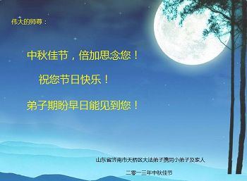二零一三年九月十八日 沈阳大法弟子祝师父中秋节快乐!
