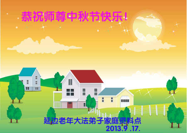 【明慧网二零一三年九月十九日】 吉林省延边老年大法弟子恭祝师父中秋节好!