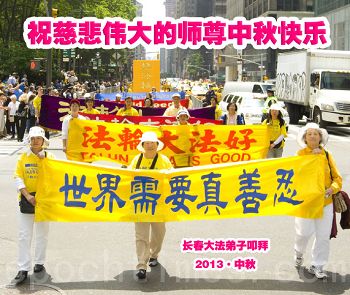 2013年9月17日 吉林省长春大法弟子在海外祝师父中秋节快乐!